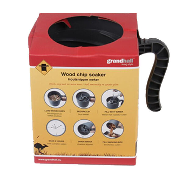 Odličen kompaktni plastični namakalnik najboljše kakovosti, kot nalašč, da svoje lesne sekance pustite v vodi, preden začnete dimiti na žaru. Navojni pokrov ohranja lesne sekance nenehno potopljene, zahvaljujoč luknjam pa ga boste lahko izpraznili ali napolnili z vodo, ne da bi ga odstranili. Priporočljivo je, da čips pustite potopljen vsaj 2 uri, da zagotovite popolno absorpcijo.