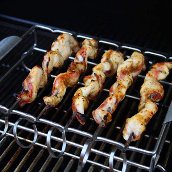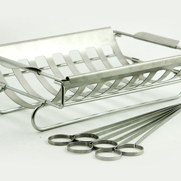 Ta set lahko uporabljate s priloženimi nabodali ter pripravite slastne specialitete, kot sta meso in zelenjava ter jih hrustljavo zapečete. Z vložkom je držalo idealno za pripravo kosov mesa in rib. Preprosto položite koščke mesa ali rib v vložek in jih položite na žar skupaj s stojalom.