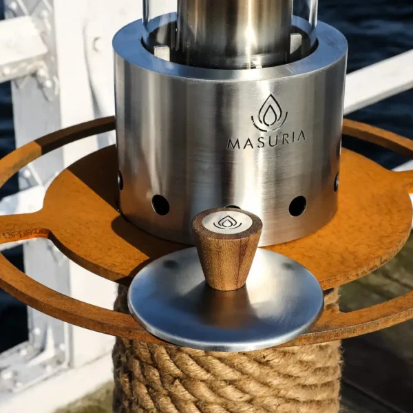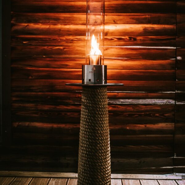 Svetilka Juno je izdelana je iz trpežnega jekla in kaljenega stekla, kar zagotavlja varnost in popoln nadzor nad plamenom. Za varno in enostavno uporabo je priložen tudi eleganten jekleni pokrov za dušenje plamena.