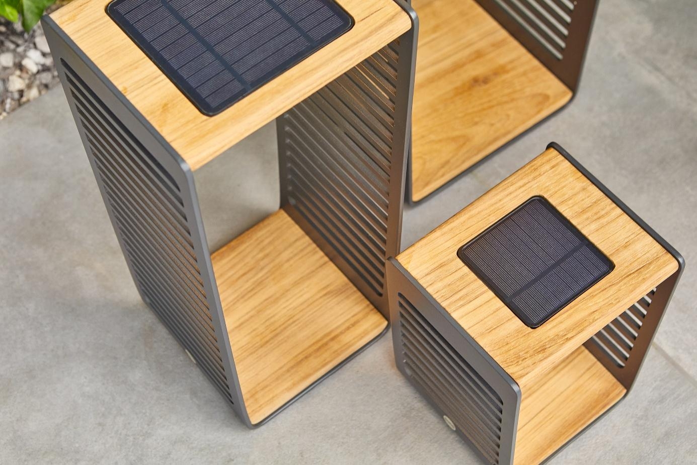Minimalističen dizajn se lepo poda k različnim stilom vrtnega pohištva. Svetilka omogoča tri stopnje svetilnosti, zato lahko intenzivnost svetlobe prilagodite glede na priložnost – od nežne ambientalne osvetlitve do močnejše svetlobe.