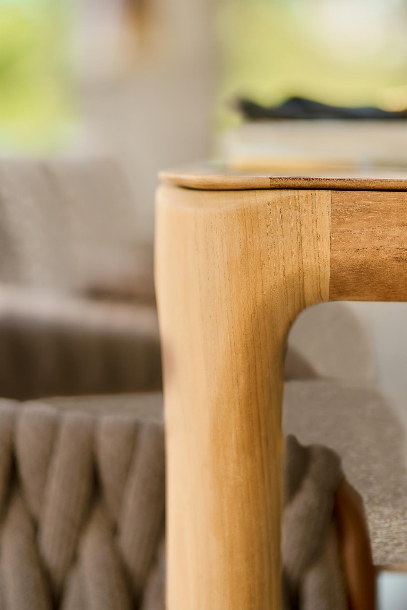 Stoli Senese nadaljujejo zgodbo naravne estetike s svojo mehko, zaobljeno obliko in dovršeno izdelavo iz tikovine. Njihova zasnova omogoča ergonomsko udobje in vizualno lahkotnost, ki prostor oplemeniti z občutkom sproščene elegance.
