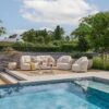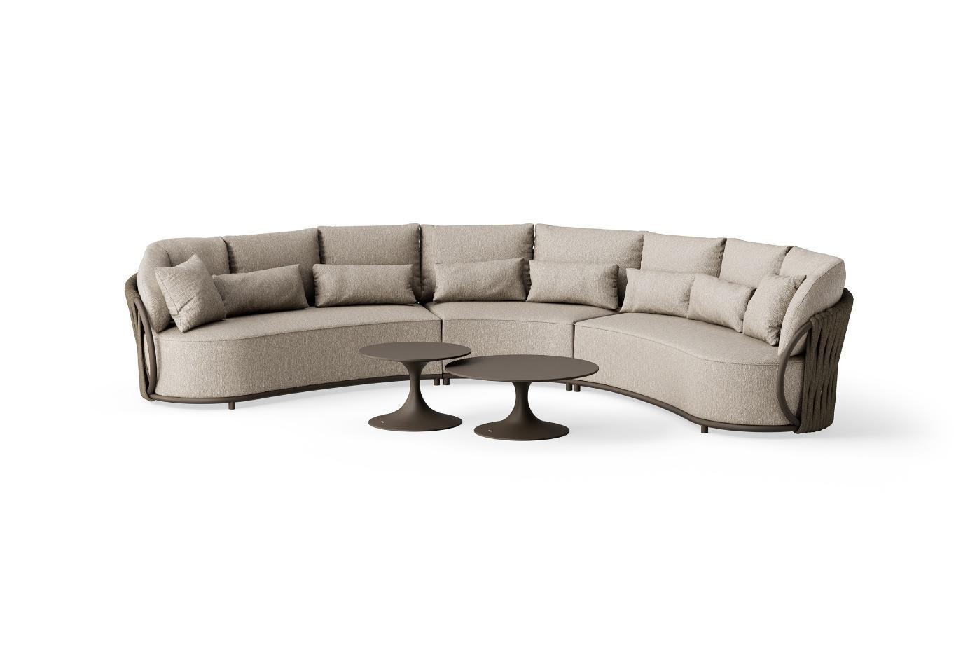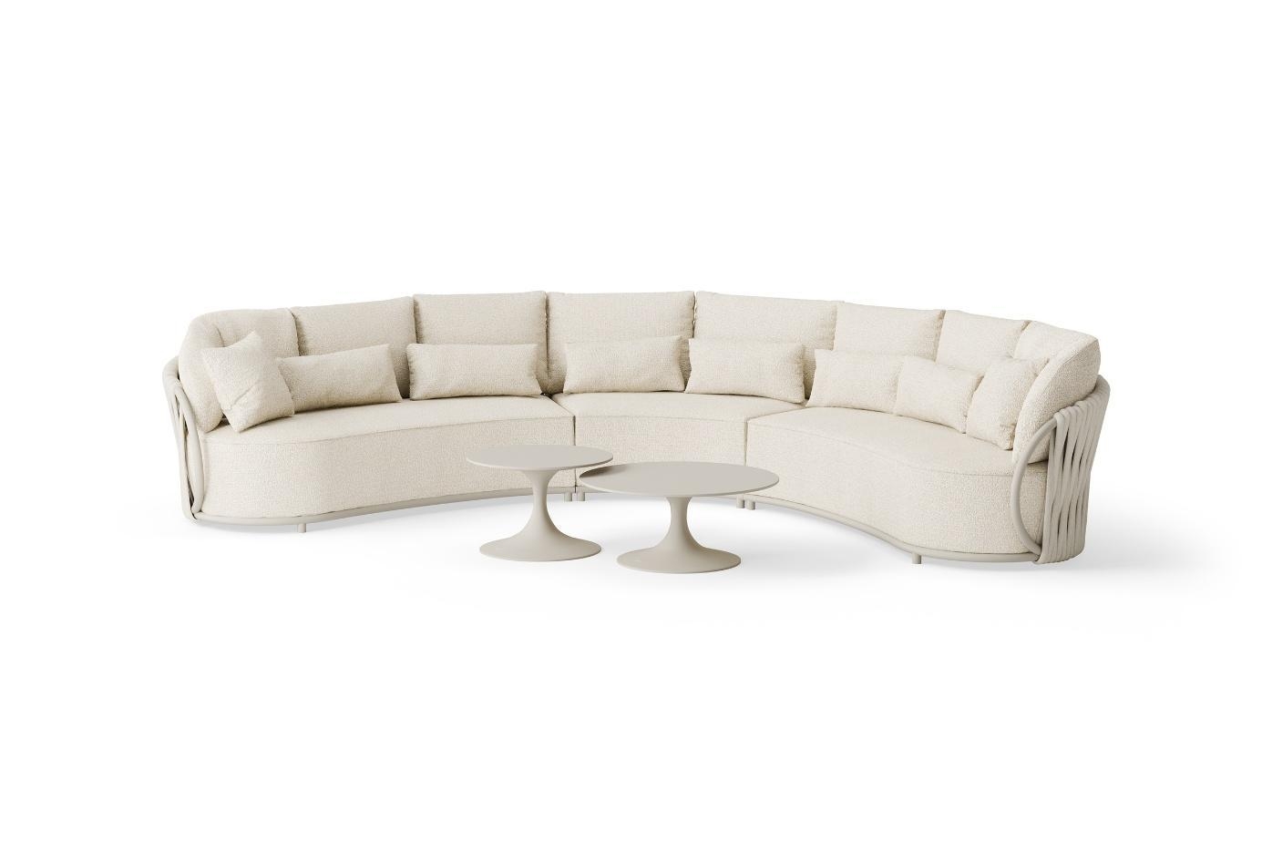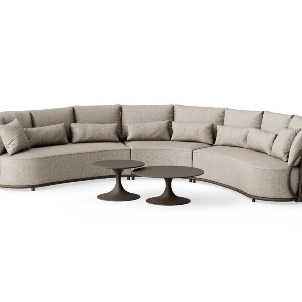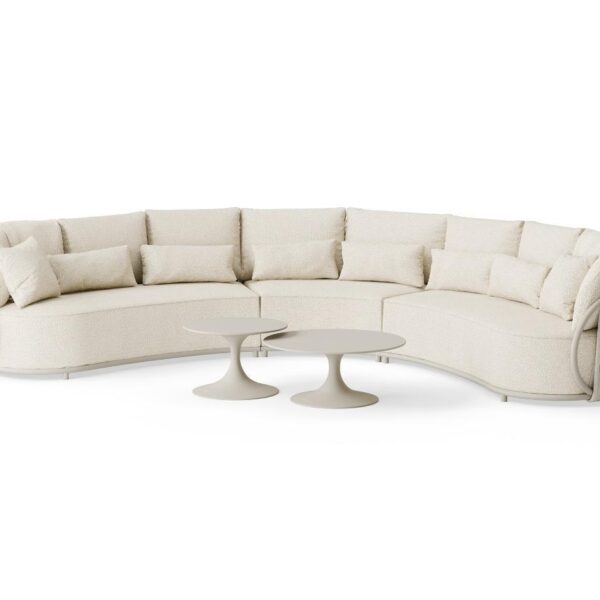 Sedežna garnitura Vivaro je zasnovana za popolno sprostitev. Prostorna kotna postavitev omogoča udobno druženje več oseb, medtem ko bogato polnjene blazine nudijo izjemno mehkobo in podporo. Tkanina Pebble Desert Bouclé je prijetna na otip, odporna na UV-žarke ter primerna za uporabo v vseh letnih časih.