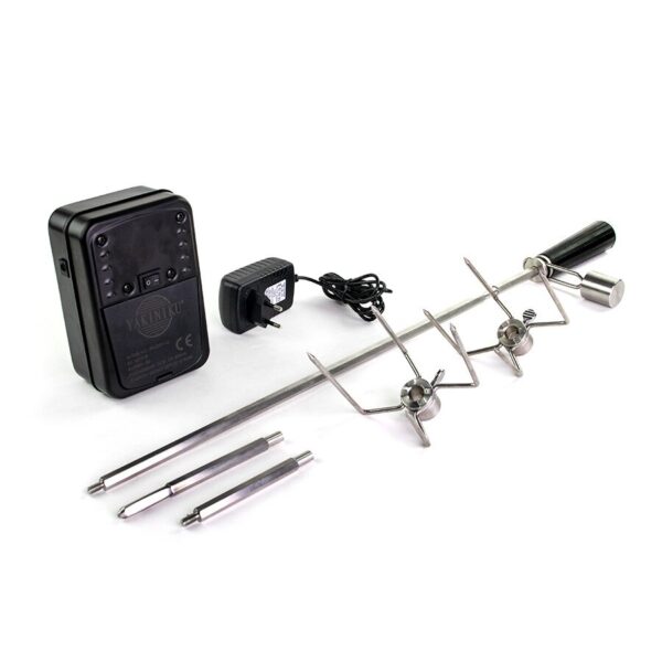 Ta naprava se uporablja v kombinaciji z nastavkom za pico Yakiniku Large in XLarge. S pomočjo gumba za vklop/izklop lahko vrtljivi raženj preprosto aktivirate. Deluje na 220 V omrežne napetosti ali baterije. Baterije niso priložene.